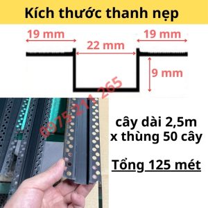 kích thước nẹp thạch cao: thanh nhựa dài 2.5 mét/ cây, nẹp u đen thạch cao rộng 22 mm và cao 9li